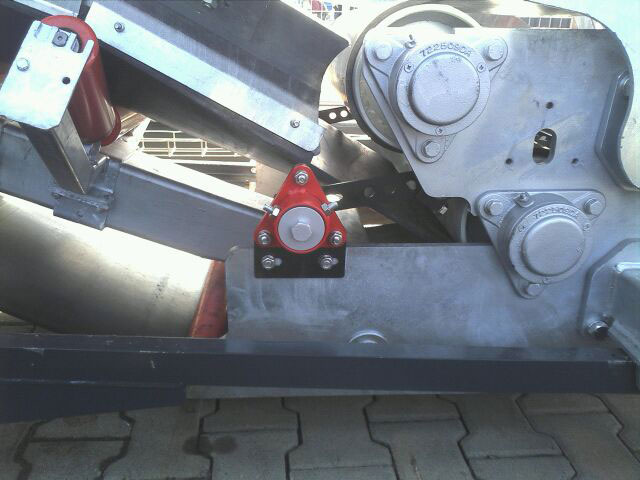 Secundärabstreifer BASIC LINE mit konvexer Abstreifleiste besetzt mit Sinter Hartmetall in Vordosierung für Asphalt Zuschlagstoffe.