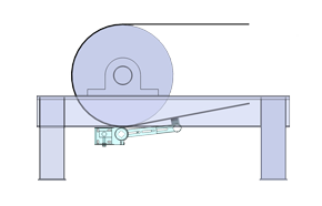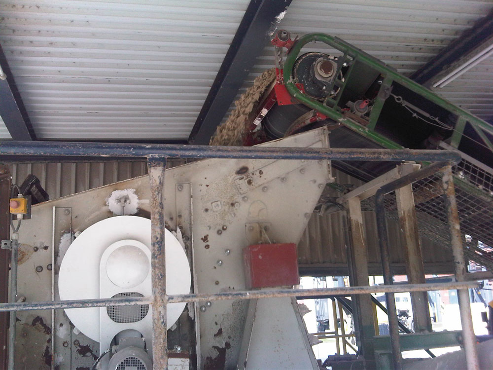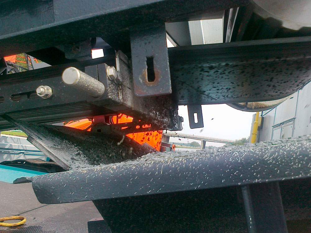 Primärabstreifer BASIC LINE mit Kunststoffleiste eingehängt in Anlage zur Formenbeschickung bei der Herstellung von Betonsteinen.