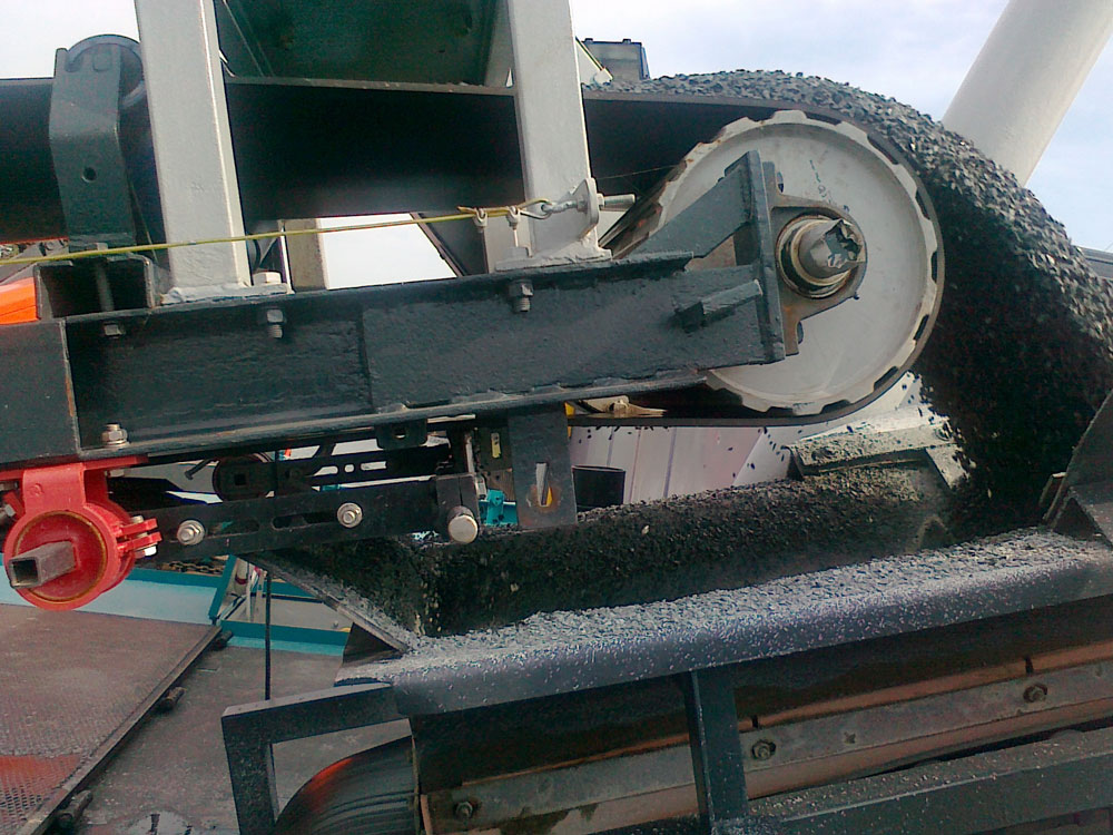 Secundärabstreifer BASIC LINE mit konvexer Abstreifleiste besetzt mit Sinter Hartmetall in Vordosierung für Asphalt Zuschlagstoffe.